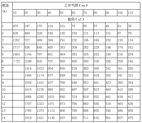 3.3 磁場強度:H≥0.4T,工作氣隙100mm時